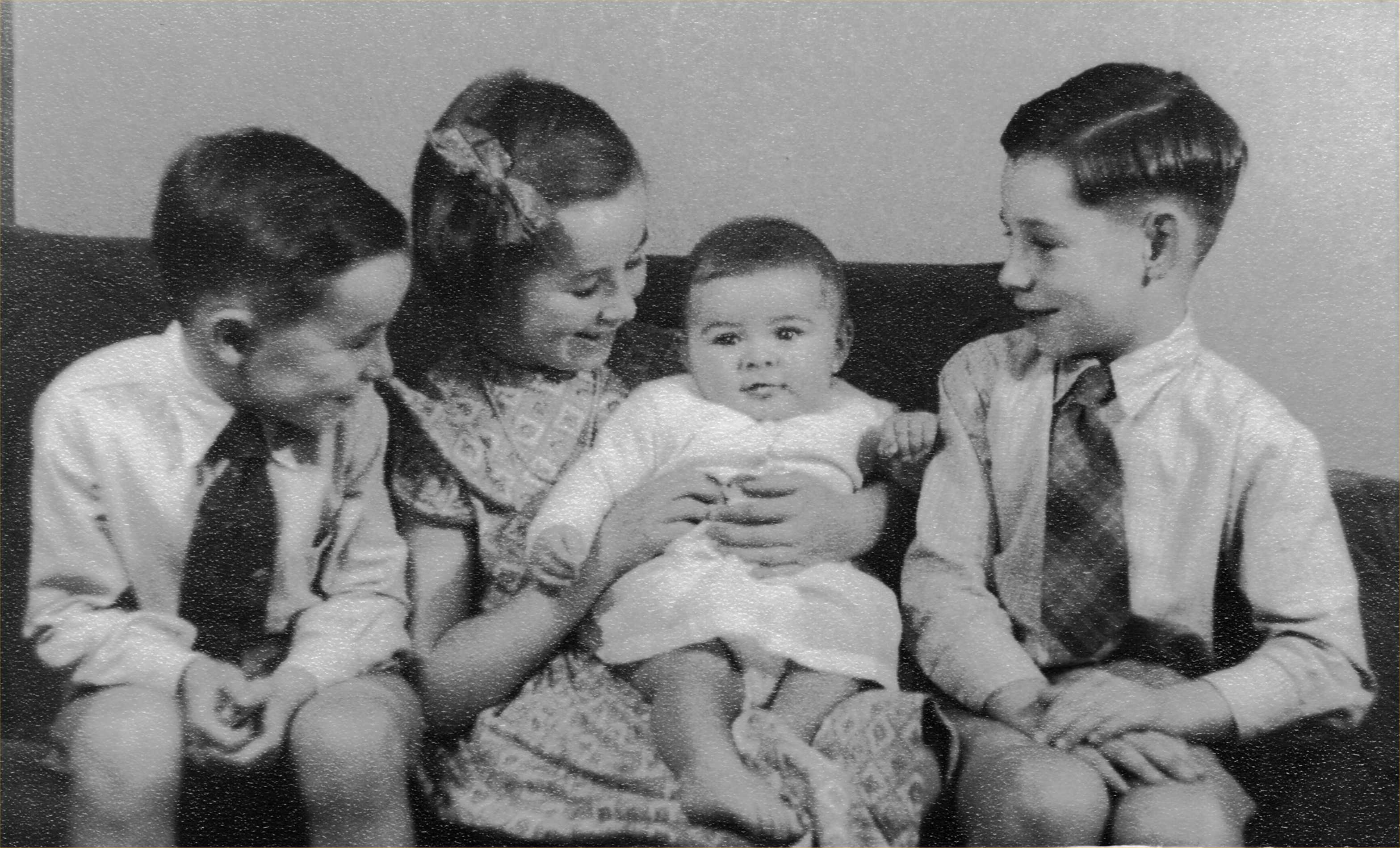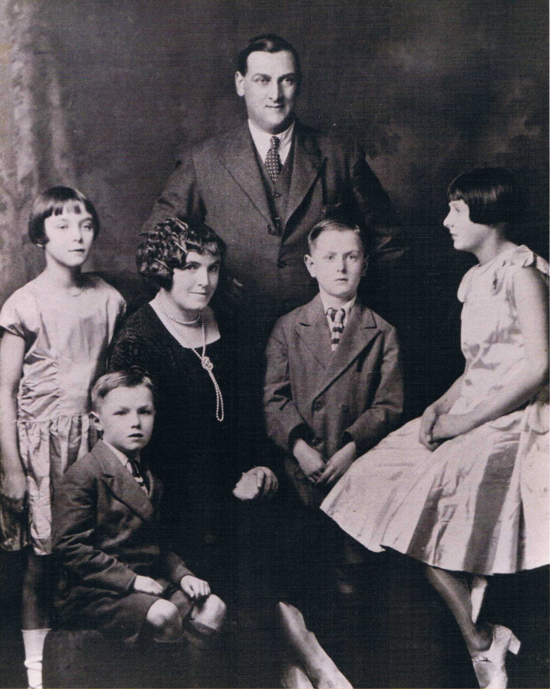 | Photo of Samuel Ingwell (b1875) with his wife Rosina (nee Sparke) and their six children. | Photo of four grandchildren of Walter (b1880) and his wife Mary (nee Walsh). | Photo of Mary Ellen Sims (nee Wilson - wife of Robert b 1865) with her two daughters and their husbands | Photo of Herbert Martin (b1894) with his wife Mary (nee Clines) and their four children. |